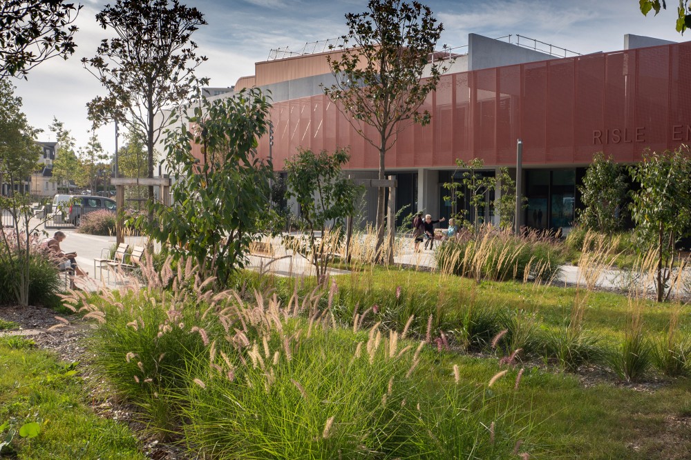 Après l’aboutissement d’un plan guide à l’échelle du territoire urbain de la ville de l’Aigle, le premier acte d’aménagement concerne la requalification des espaces publics majeur d’entrée de ville et plus précisément les abords du nouveau centre culturel, dernier équipement phare de la ville. Situé en contact direct avec le centre-ville et en bordure de la rivière de la Risle, cette première phase de travaux annonce l’ambition portée par la ville sur la reconquête des espaces publics et le virage environnemental faisant suite aux préconisations du plan guide mené par la Compagnie du Paysage et le bureau d’urbanisme ADEPE en octobre 2020.