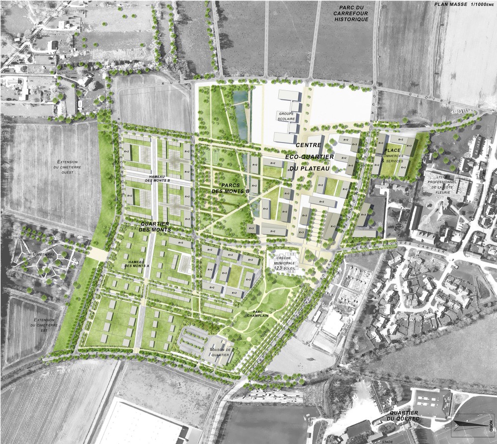 L’aménagement de l’éco-quartier répond en tous points au programme avec la création d’un centre fédérant les futurs équipements, une diversité de l’habitat pour répondre aux besoins des habitants pouvant en outre s’adapter aux évolutions du projet, un maillage de voies diversifié et hiérarchisé et une amélioration de la desserte du plateau.