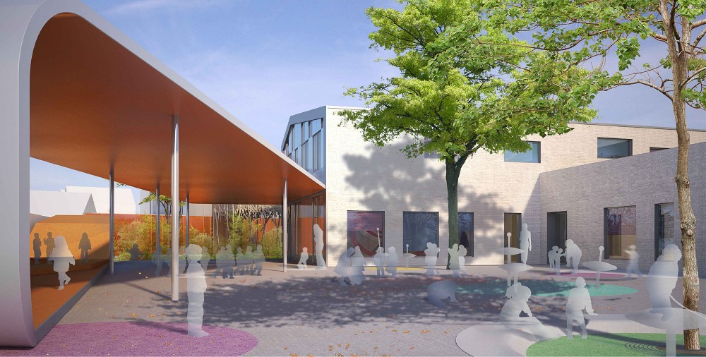 Chaque structure bénéficie d’un espace extérieur propre et différent, : intime et personnalisé pour la maternelle et le centre de loisirs, central et partagé pour l’élémentaire :