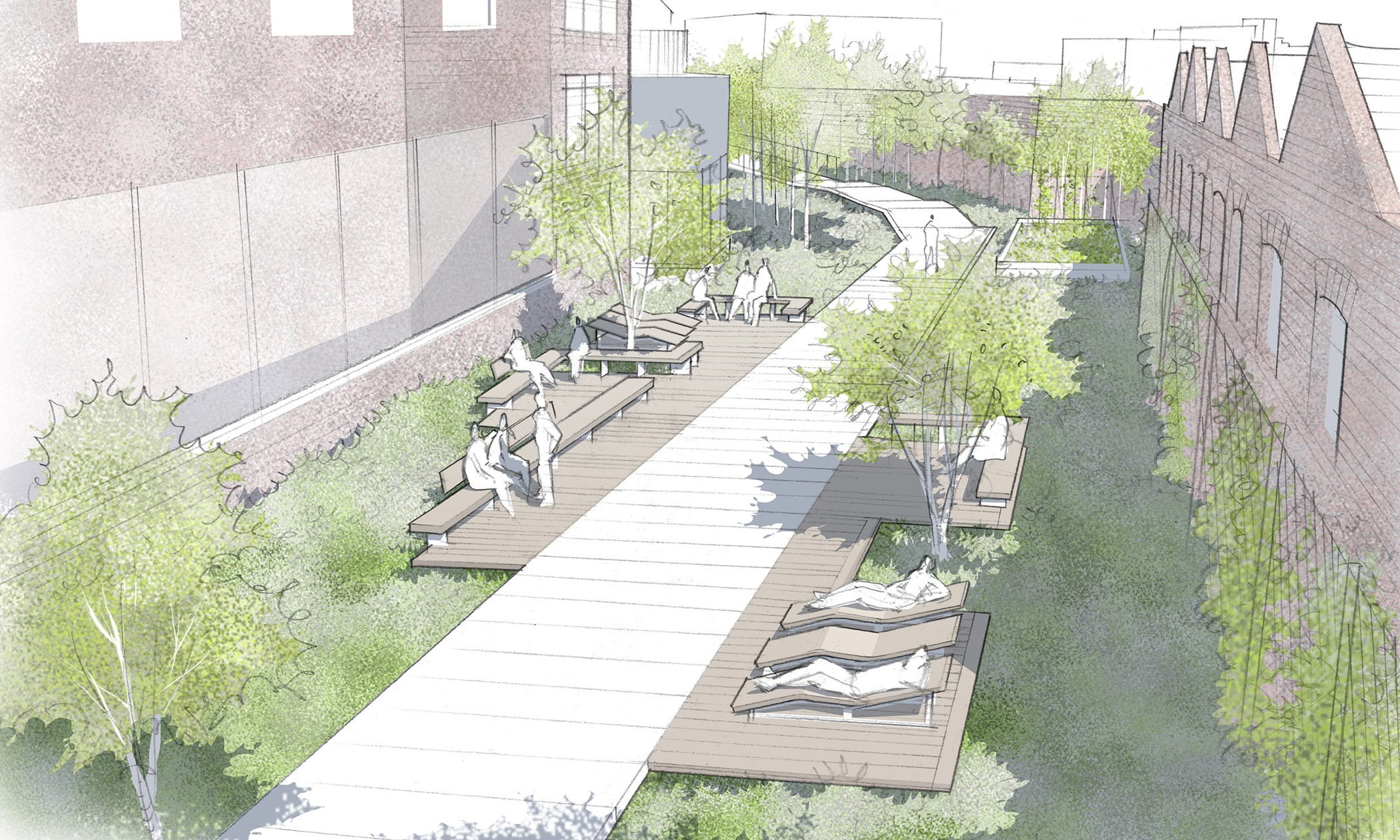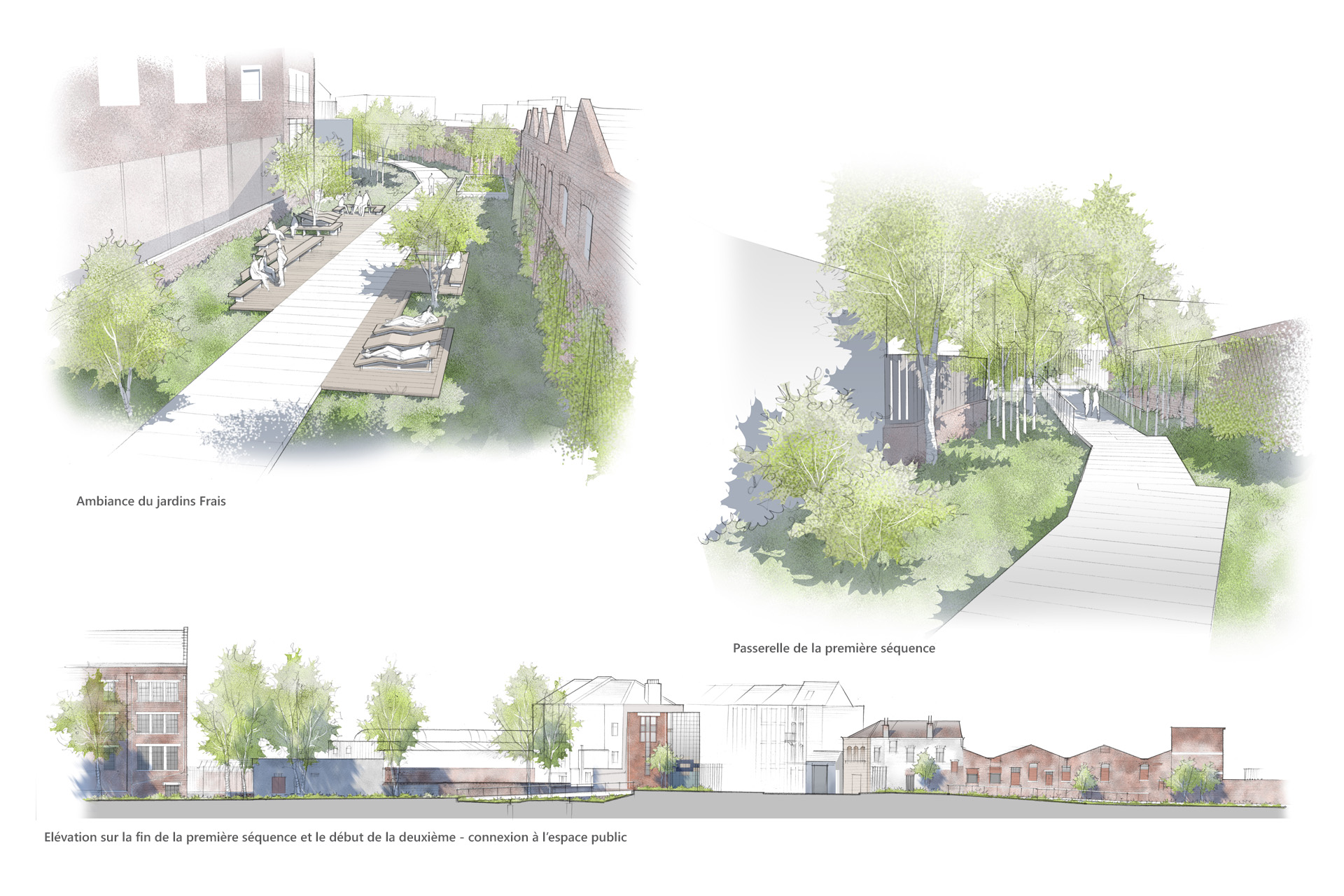 La séquence «Senne Naturelle» : s’articule sur un secteur majoritairement occupé par des habitations. Cette séquence déroulera une nature exubérante pour renforcer de façon significative la présence du végétal au cœur du quartier. Le Parc de la Senne devenant ainsi le poumon vert et le lieu privilégié de développement de la biodiversité.