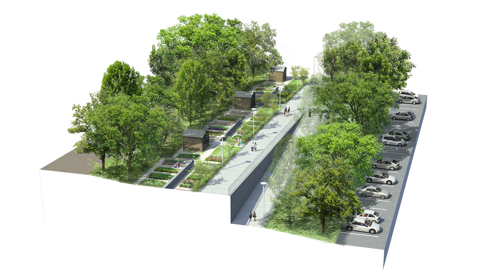 La séquence «Senne Cultivée» inscrit des jardins potagers collectifs dans des jeux de terrasses et vient affirmer la connexion vers le Parc du 21 juillet. Son exposition sud/ouest constitue un environnement de qualité pour permettre une production et un rendement constant constituant des ressources complémentaires à certains foyers modestes du quartier.
