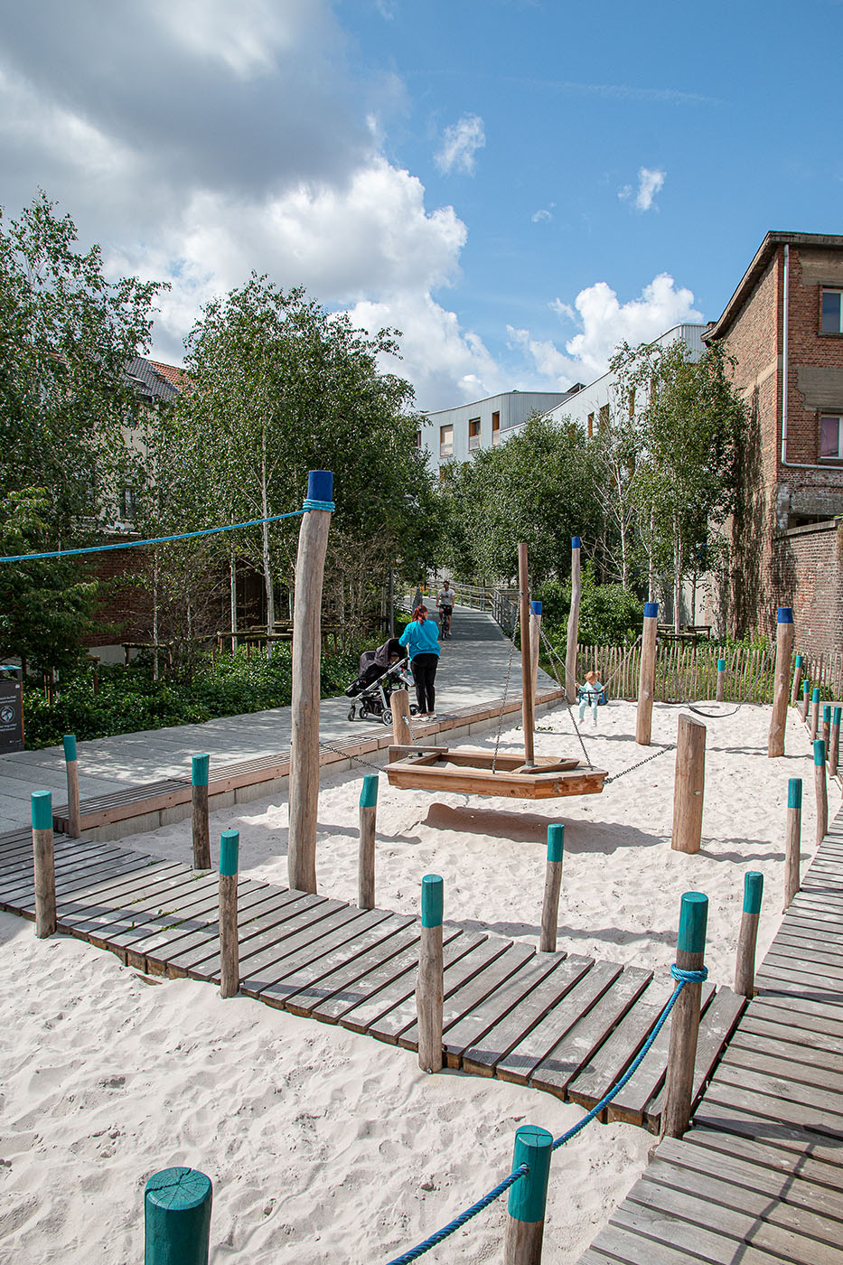 La Séquence «Senne Place Jardinée» s’adosse aux secteurs urbains dynamiques soulignés par des intersections d’infrastructures ou des regroupements d’équipements publics. Ces tableaux, déjà vécus comme des lieux de rencontre et de convergence, sont appuyés dans leur vocation et aménagés en places jardinées afin d’assumer leur double fonction d’espace de transit mais aussi d’espace de sédentarité. Ces places jardinées positionnent clairement leurs intentions d’espaces de convivialité intergénérationnelle au cœur du quartier Masui.